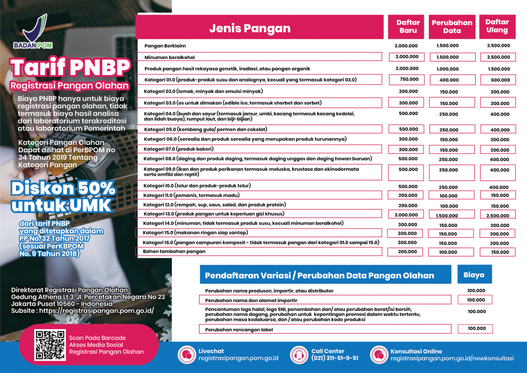 Tarif PNBP Registrasi Pangan Olahan