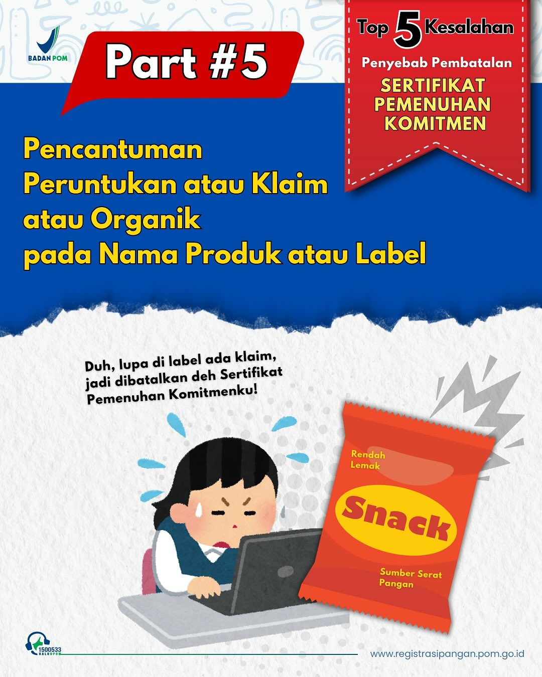 TOP 5 KESALAHAN PENYEBAB PEMBATALAN SERTIFIKAT PEMENUHAN KOMITMEN REGISTRASI PANGAN OLAHAN RISIKO MENENGAH RENDAH