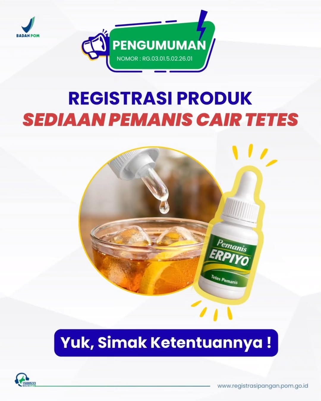 PENTING! PENGUMUMAN REGISTRASI SEDIAAN PEMANIS CAIR TETES